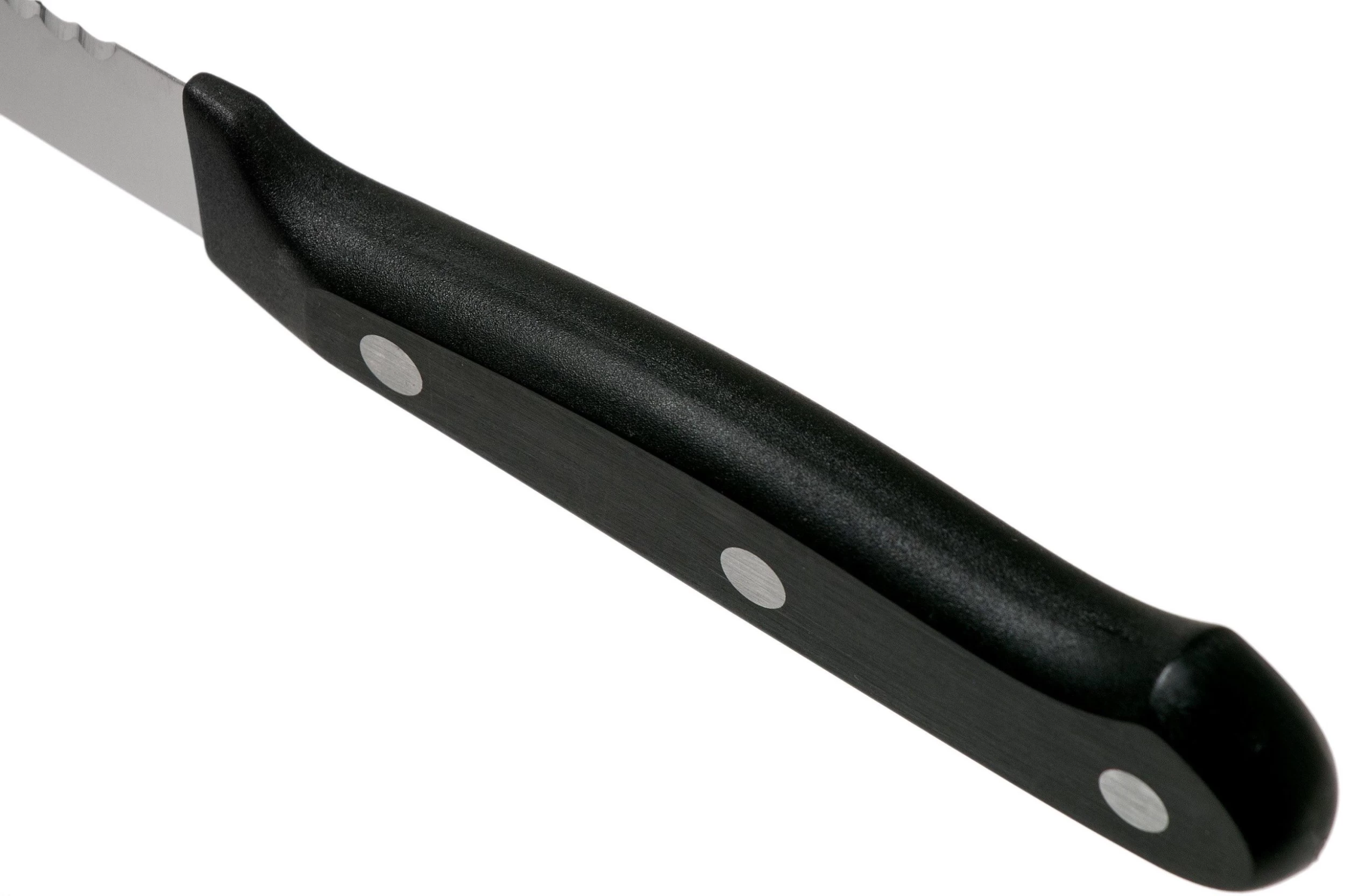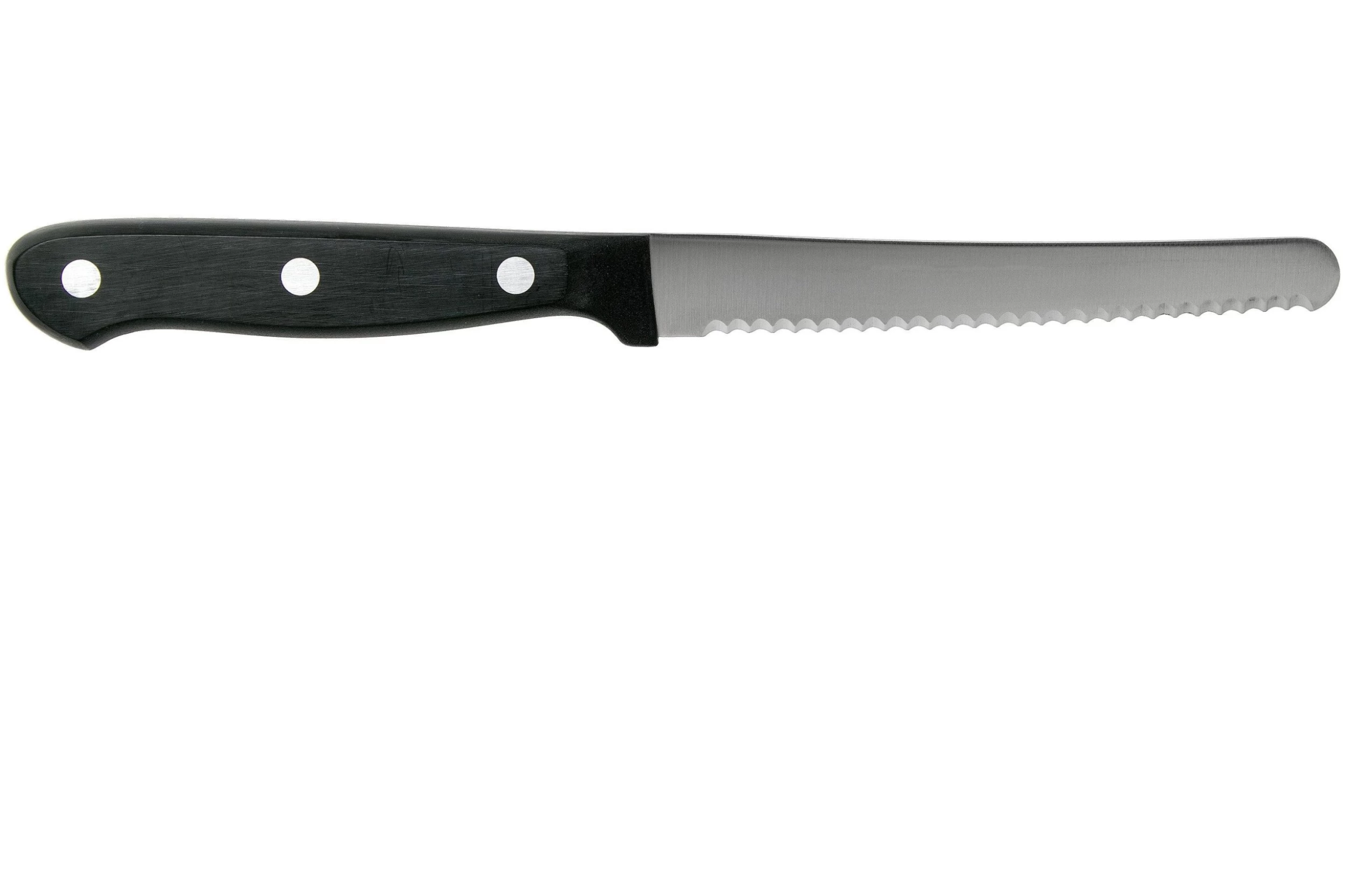 Ce couteau à tomates Wüsthof Gourmet 12 cm est le compagnon idéal pour préparer un panier-repas ou un brunch. Avec les fines dents de sa lame, ce couteau coupe non seulement parfaitement le pain sans le déchirer, mais il convient également pour trancher les légumes (comme les tomates fermes), et le saucisson. Cela en fait un couteau parfait pour les pique-niques et brunchs.