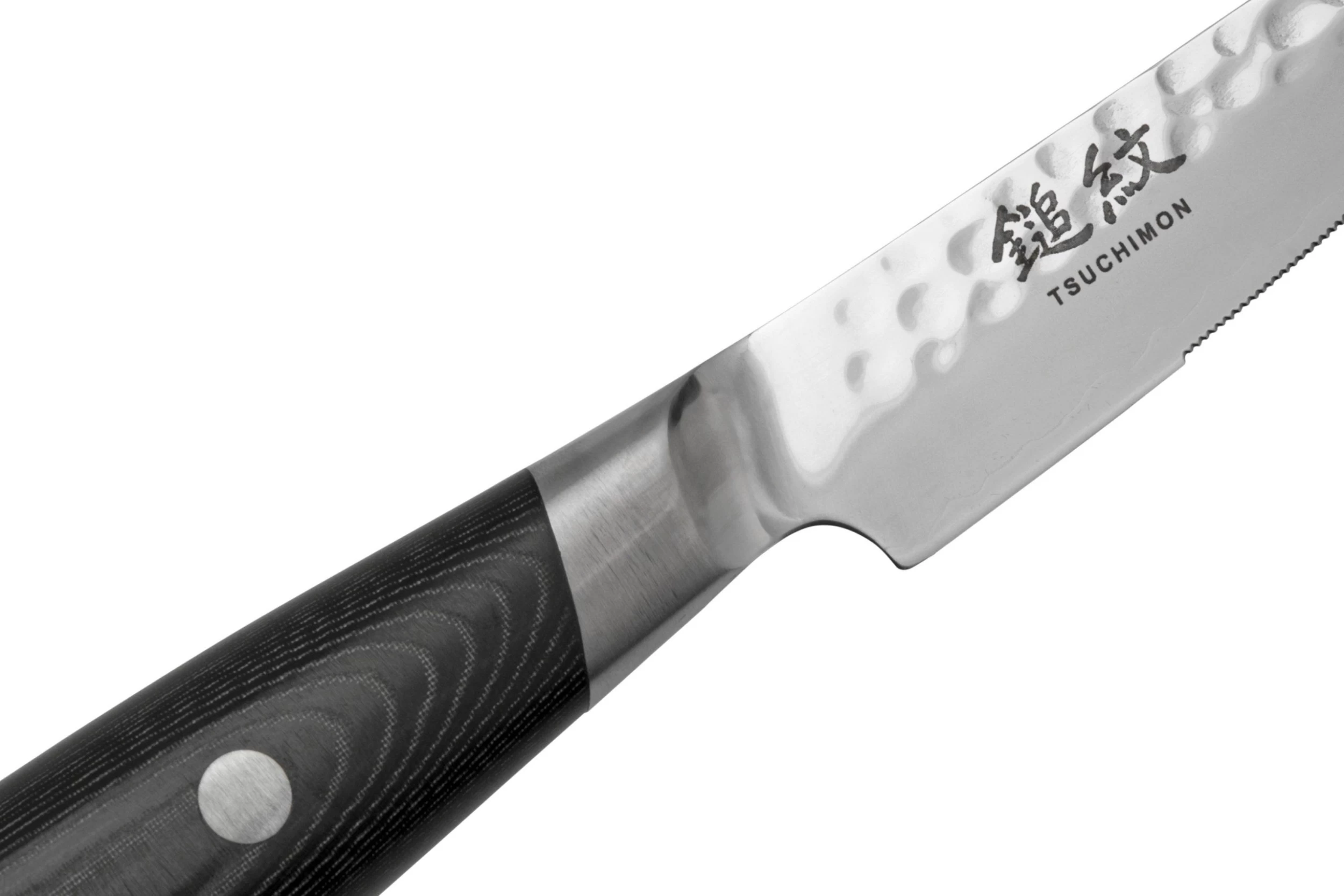Le set de 6 couteaux à steak Yaxell Tsuchimon se compose de six couteaux à steak japonais élégants, à lame martelée, et d’un bloc à couteaux en bois de hêtre. Ces couteaux à steak sont dotés de toutes petites dents, ce qui leur permet de garder longtemps leur tranchant, et de couper la viande sans effort. Sympa à offrir, et encore plus sympa à recevoir !