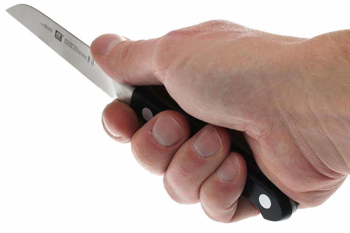 Les couteaux de cuisine de la gamme Zwilling Pro ont une lame fabriquée à partir d’une seule pièce d’acier. La lame « pleine soie » se prolonge jusqu’à l’extrémité du manche en plastique. Le manche y est fixé grâce à 3 rivets. La continuité entre le manche et la lame se fait sans transition. Il n’y a donc aucune place pour les bactéries. Ces couteaux ont un design très classique et sont particulièrement appréciés par les cuisiniers aimant travailler avec des couteaux un peu plus lourds que la moyenne.