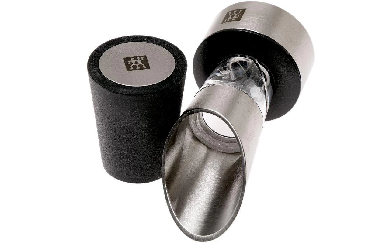Cet ensemble sommelier Zwilling deux pièces est parfait pour tout amateur de vin. Il se compose d’un couteau de sommelier 3 en 1 et d’un décanteur. Le tout fabriqué en acier inoxydable et livré dans un beau coffret. Un ensemble très professionnel pour tout amateur de vin qui se respecte.
