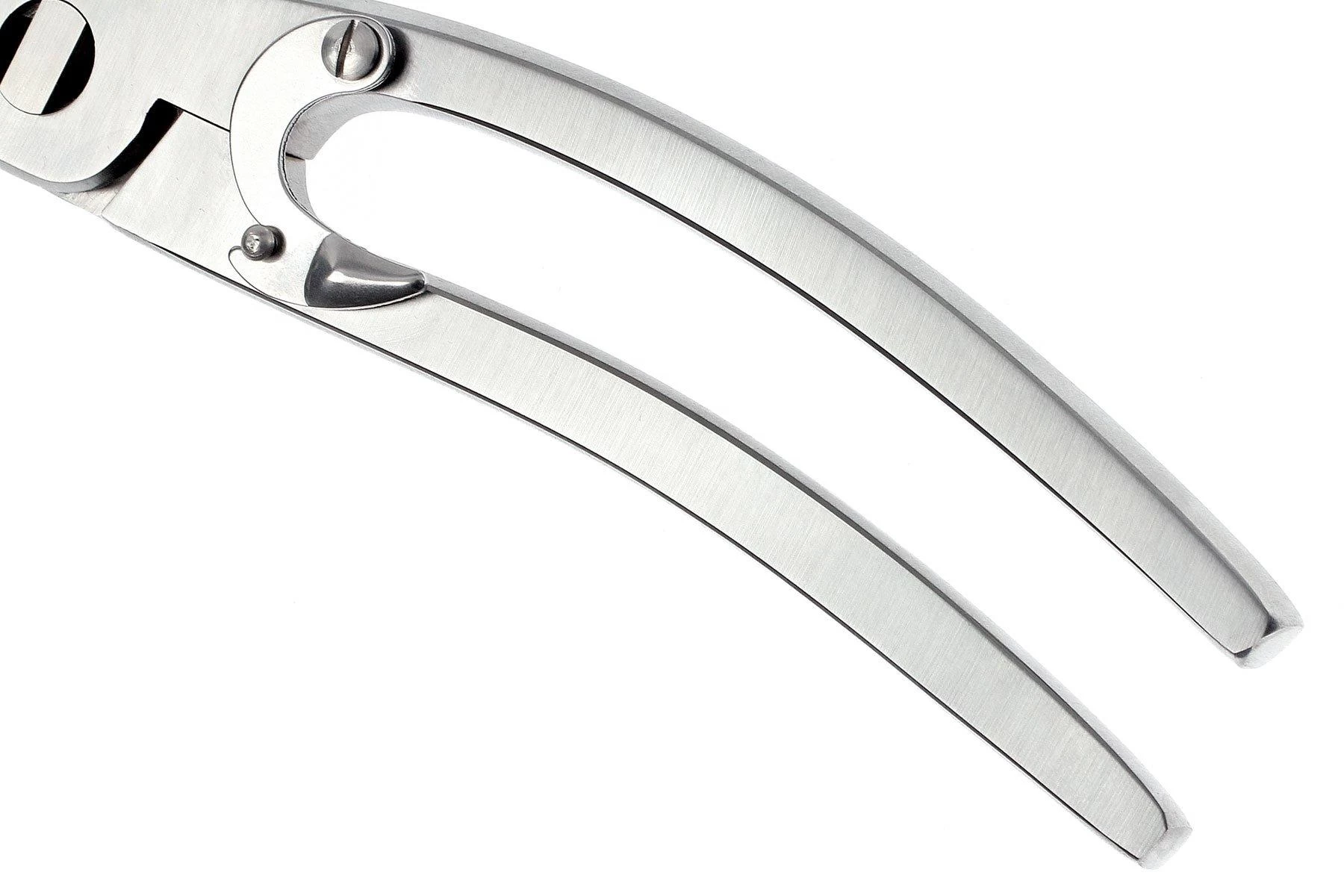 Ces brillants ciseaux à volailles 42903-000-0 sont de haute qualité et extrêmement fonctionnels. Grâce à un acier résistant à la corrosion de haute qualité, ces ciseaux vous dureront des années. Leur forme légèrement incurvée crée un effet de levier optimal, qui vous permet de couper les os sans effort. Après usage, vous pouvez démonter ces ciseaux, afin de les nettoyer soigneusement. Très hygiénique !